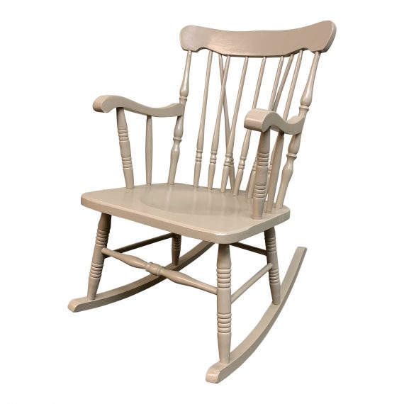 Design Plus Gallery presents a Vintage Rocker. Painted in a neutral gray, the piece blends in easily in many settings. Slightly smaller size makes it fit where you need it to.