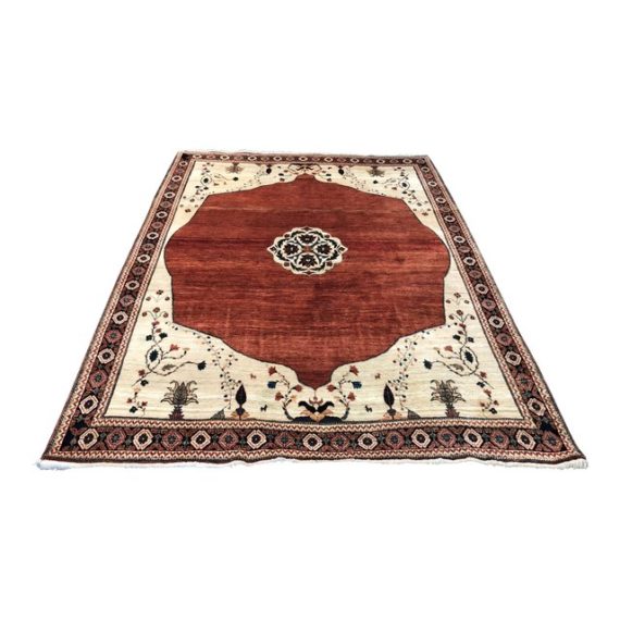 Design Plus Gallery presents a beautiful hued vintage rug. The Persian Gabbeh has all the traditional details along with a wonderful contrast color palette. Small damage to corner, and small area of discoloration.