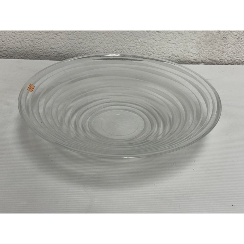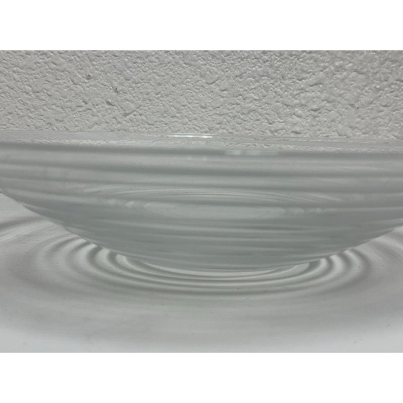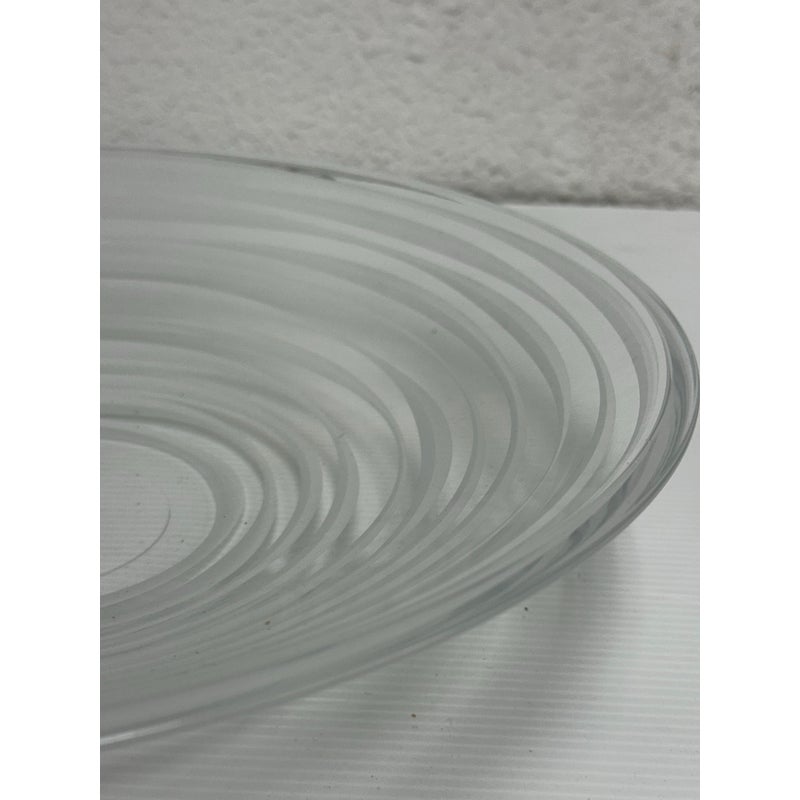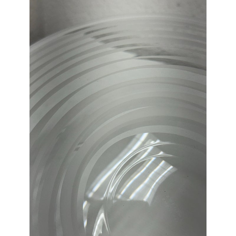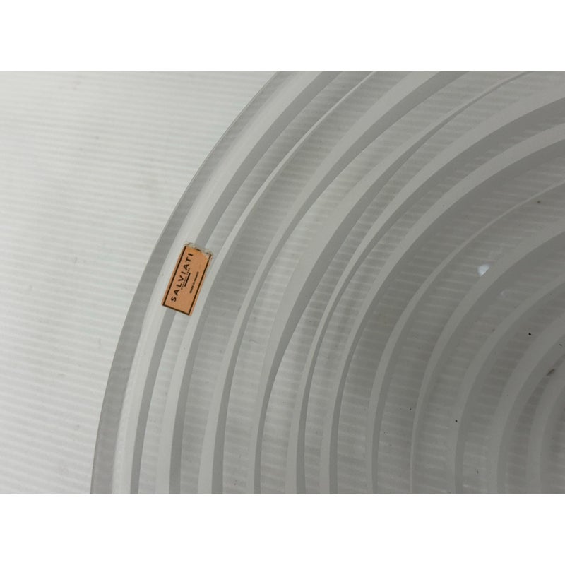 Design Plus Gallery presents a Large Murano Glass Centerpiece Bowl from Saliviati. The centerpiece is signed Salviati and likely from the Mid-20th-Century 1970s decade. The glass is completely transparent with rms of circles swirling all along the outside as it increases in diameter. It is breathtaking when you get the opportunity to view its shadow work. Is in good condition for its vintage age + use.