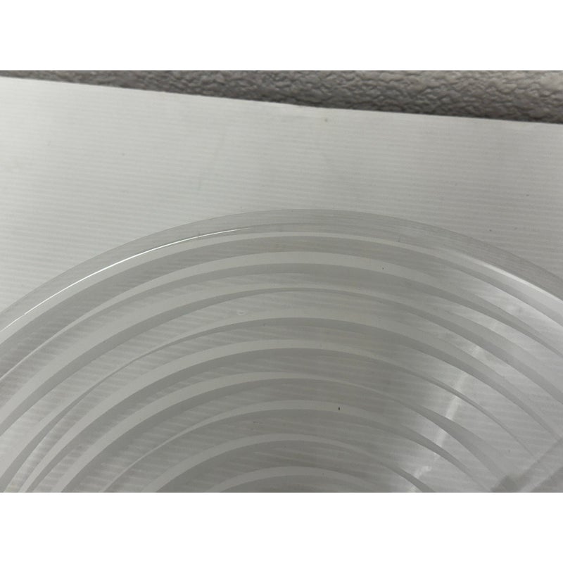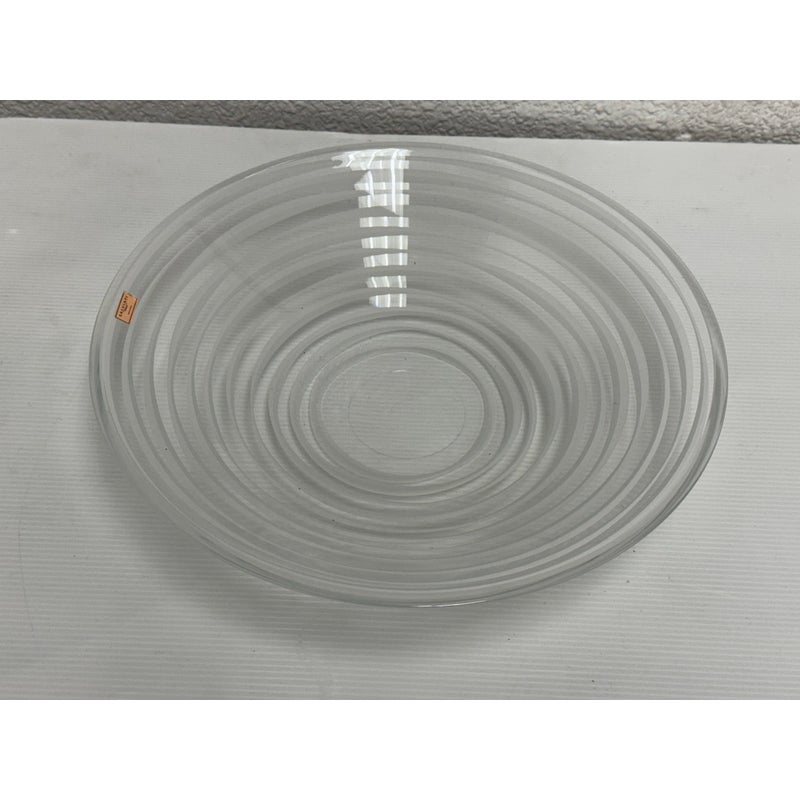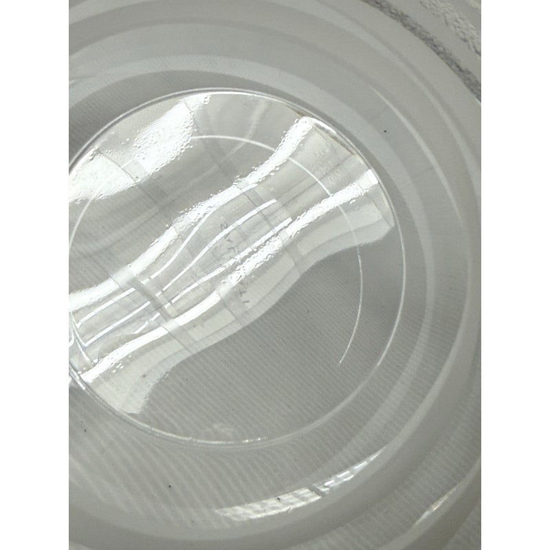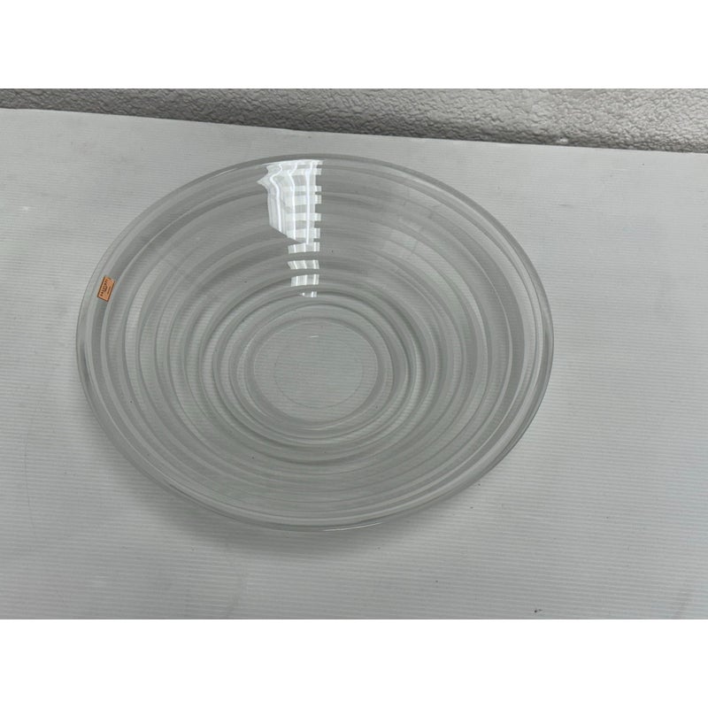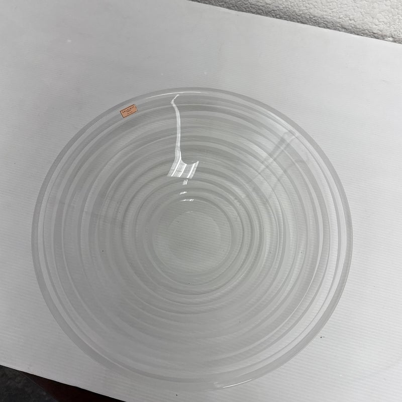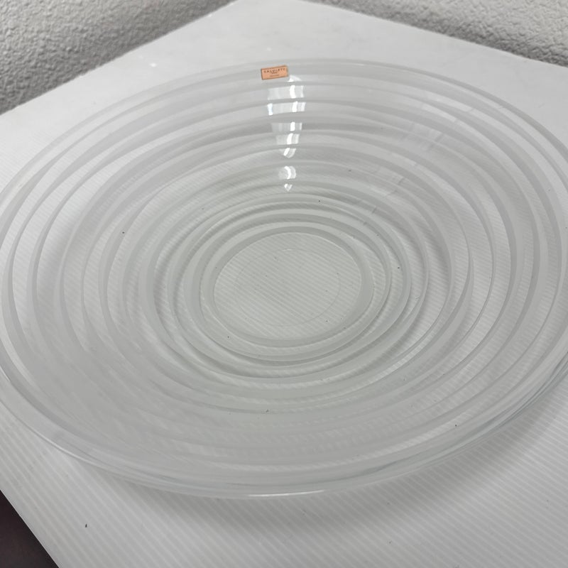 Design Plus Gallery presents a Large Murano Glass Centerpiece Bowl from Saliviati. The centerpiece is signed Salviati and likely from the Mid-20th-Century 1970s decade. The glass is completely transparent with rms of circles swirling all along the outside as it increases in diameter. It is breathtaking when you get the opportunity to view its shadow work. Is in good condition for its vintage age + use.