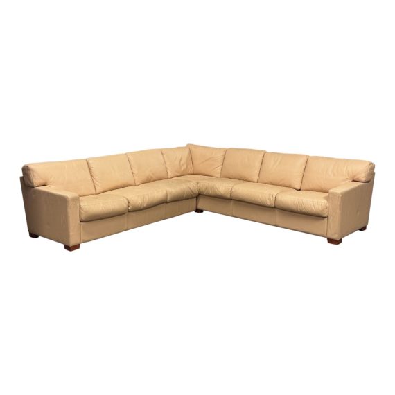 Vintage Sand Leather Corner Two Piece Sectional. Original Price: $16,000
