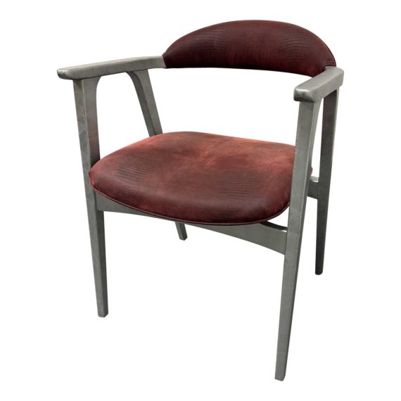 Vintage Silver Finish Arm Chair + Red Embossed Reptile Upholstery