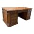 Design Plus Gallery presents an Executive Desk from Sligh Furniture. A timeless example of American craftsmanship, combining refined design with everyday functionality. Crafted from solid woods and veneers, the desk features a classic, substantial silhouette suited for a home office or executive setting. The desk offers generous storage with four drawers on each side, along with a center drawer featuring a drop-down front, ideal for use as a keyboard or writing surface. The work surface is finished with a leather inset top. The wood finish shows visible distress, lending character and warmth, while minimal surface wear is present and consistent with normal use. The desk remains in good overall condition and includes its original key. In good vintage condition, visible and minimal wear from usage. Made in Grand Rapids, Michigan, USA.