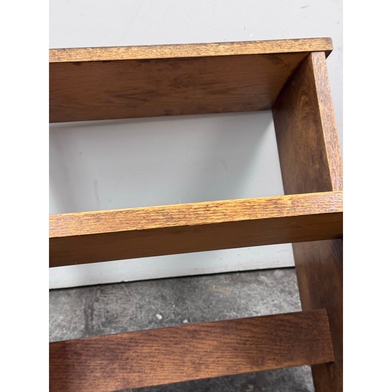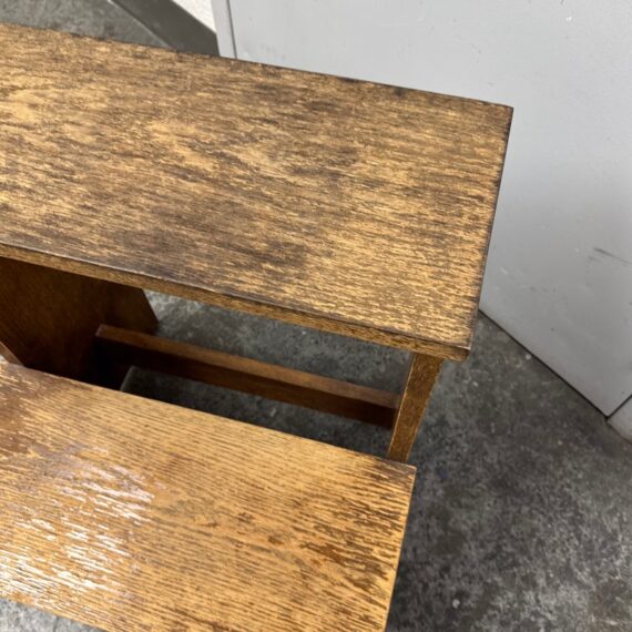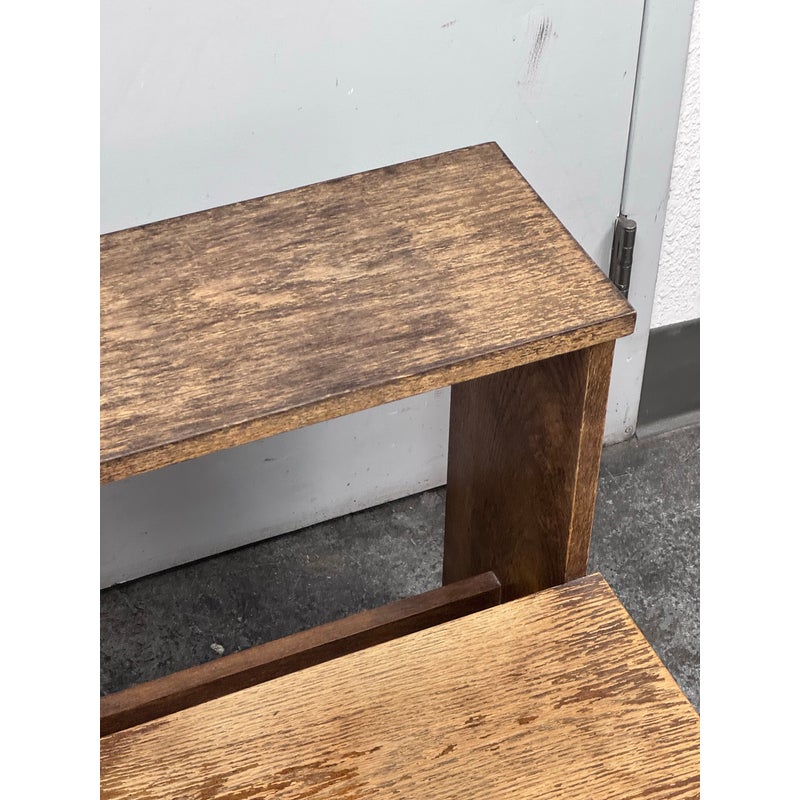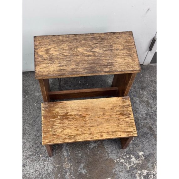 Design Plus Gallery presents a Two Step Stool of Vintage to Possibly Antique Age. Solid walnut wood construction for this simple piece will be well used in your home. There is visible wear that is consistent with it being a high functioning useful household item. Is in good stabile condition.