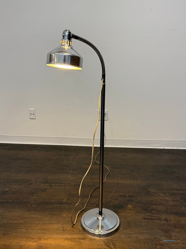 Design Plus Gallery presents a Vintage Steel Nightingale Medical Adjustable Floor Lamp. The Adjustable light fixture bends and moves to your any wish and command. Is in good condition with visible and minor wear that is consistent with usage. Made in USA.