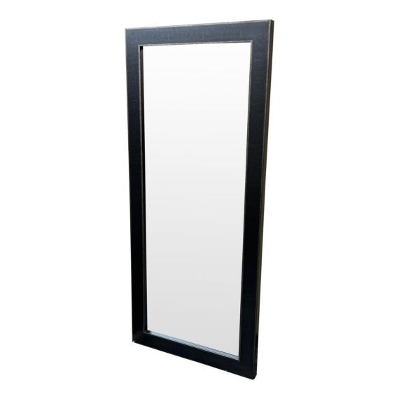 Design Plus Gallery presents a Vintage Style Mirror. The Charcoal frames have a rubbed edge finish at outside and near mirror. Clean expanse of mirror has no bevel. Small chip at corner of frame; the mirror is in fair condition for age and use.