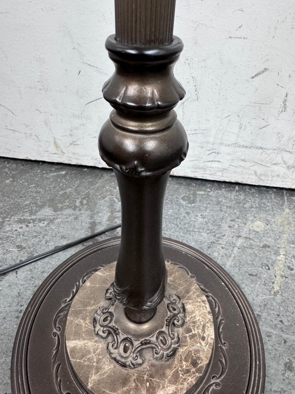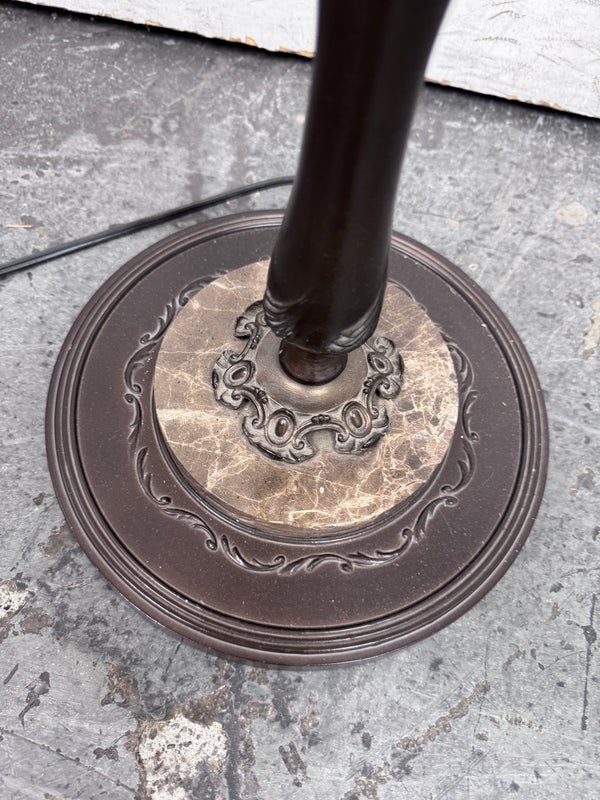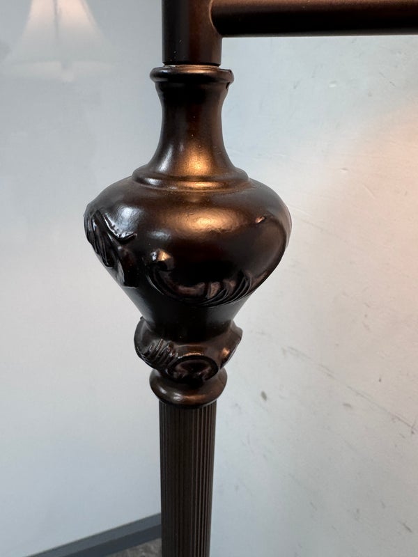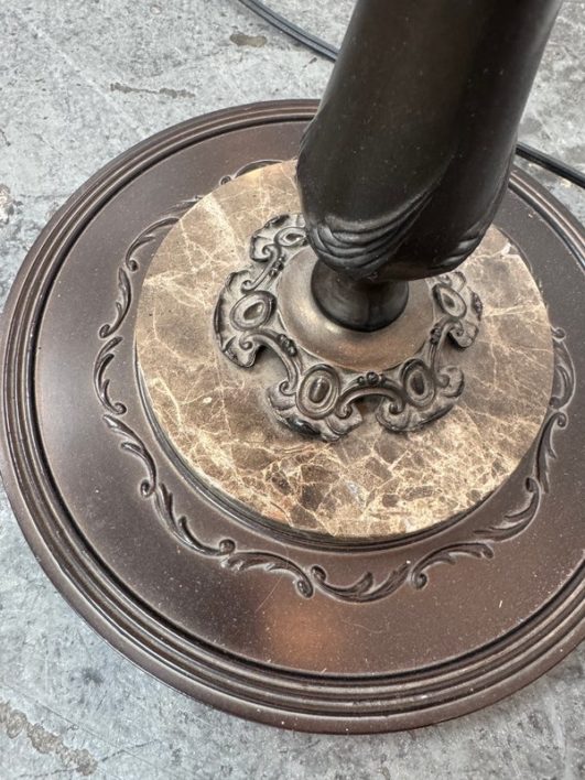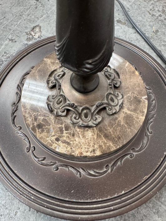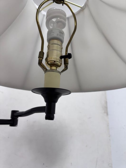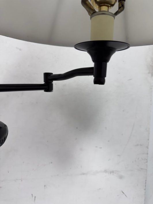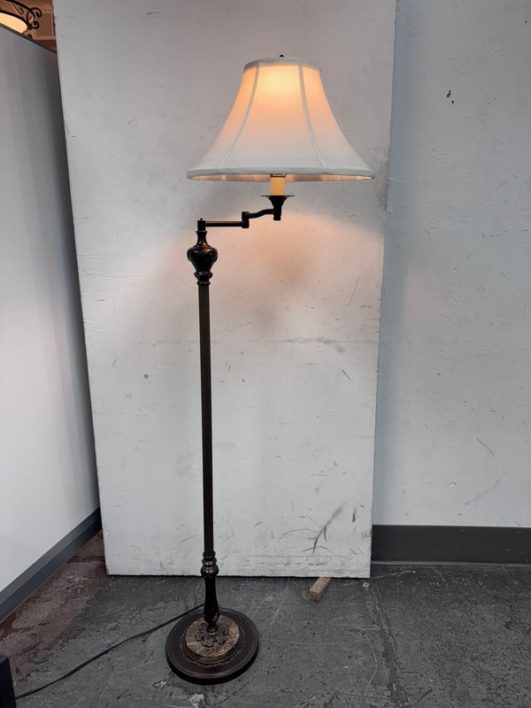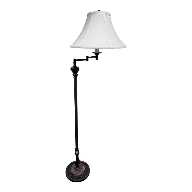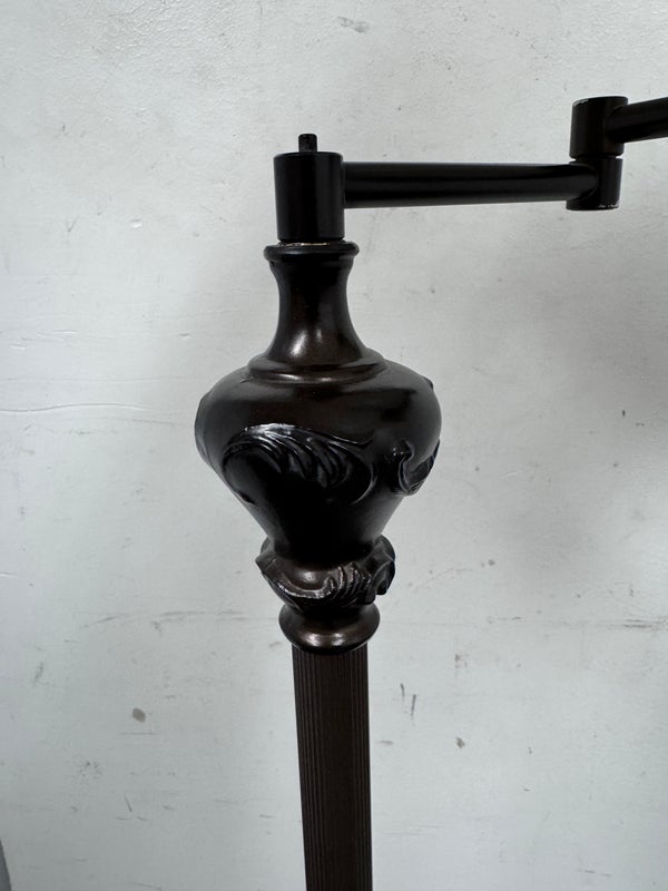 Design Plus Gallery presents an Vintage Floor Lamp with Swing Arm Feature. The lamp has casted elements from the base to the top. The lever to swing the arm was state of the art in that era. For its age and use the floor lamp is considered in good condition with visible surface wear.