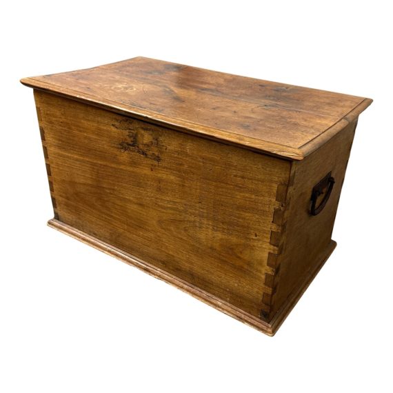 Design Plus Gallery presents a Vintage Trunk Chest. This vintage wood trunk chest exudes charm and nostalgia with its timeless design and visible signs of wear from years of usage and age. The chest features dovetail sides, showcasing the craftsmanship and attention to detail that was put into its construction. To enhance its functionality, the trunk is equipped with two sturdy metal handles, making it easy to carry or move around as needed. One of the distinguishing features of this trunk chest is its natural distress, which adds to its character and tells a story of its past. This distressed look includes scratches, scuff marks, and faded finish, giving the trunk a unique and rustic appearance. Whether used as a storage chest in a living room, bedroom, or hallway, or displayed as a decorative piece in a vintage-inspired setting, this wood trunk chest is sure to make a statement with its timeless beauty and visible history.