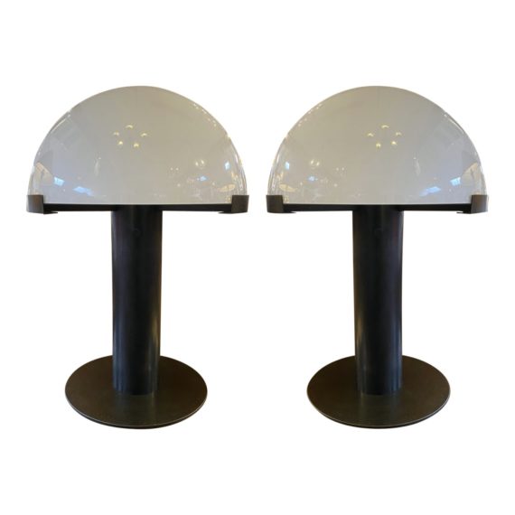 Design Plus Gallery presents a pair of Designer Custom for Visual Comfort Melange Bronze Table Lamps. Bases are made of a burnished bronze with a custom frosted white glass shade. Usual design is available through Visual Comfort with an Alabaster shade. Minor wear.