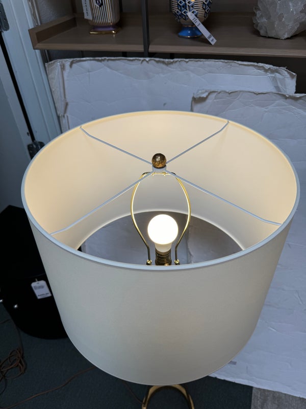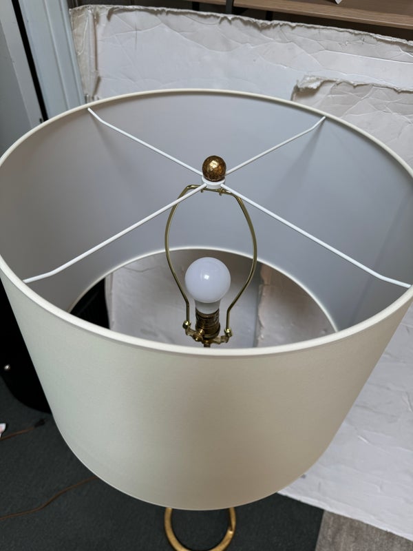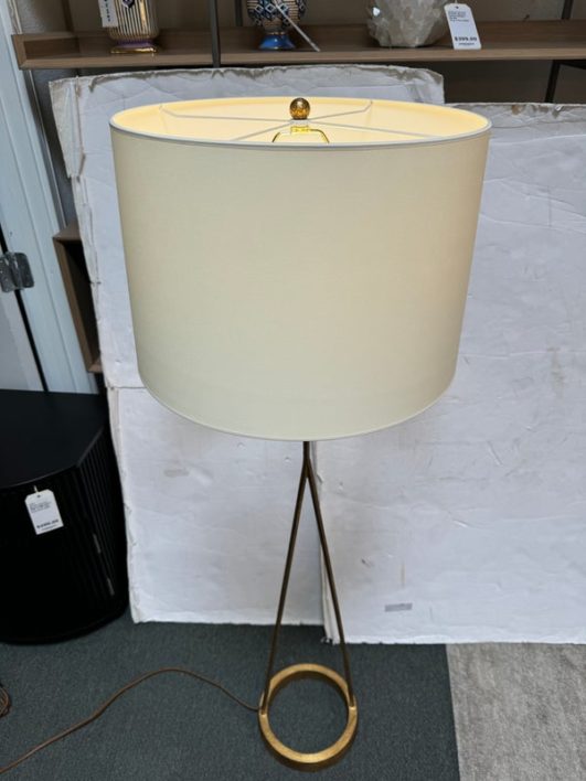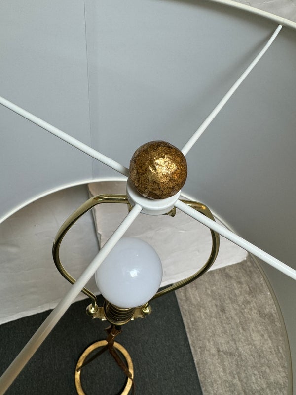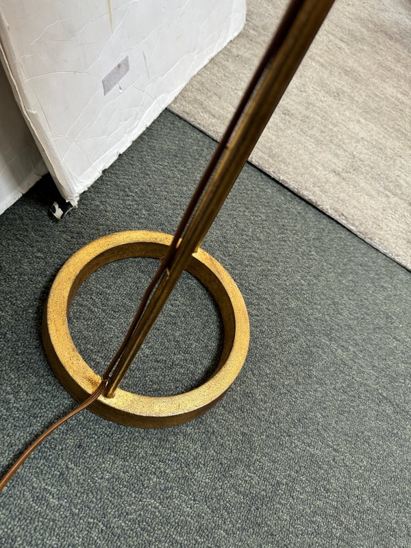 Design Plus Gallery presents the Dauphine Floor Lamp by Visual Comfort. The elegant, updated silhouette is visually light but rich in style. The gilded iron floor lamp is easily moved where needed, for just the right amount of light. Little evidence of wear; condition is good for age and use. Orig. price $639