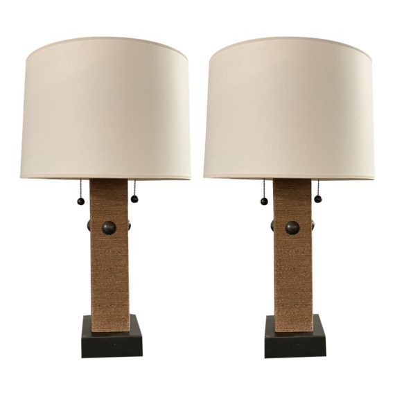 Visual Comfort Grasscloth Pillar Accent Table Lamps – a Pair