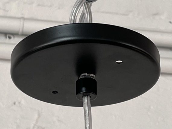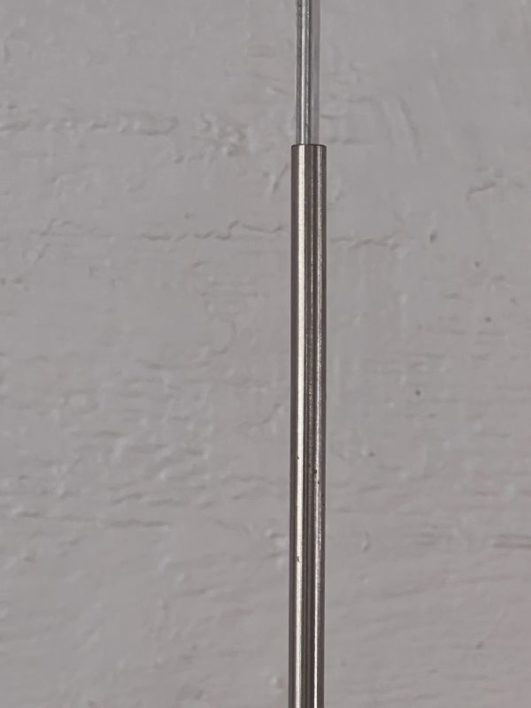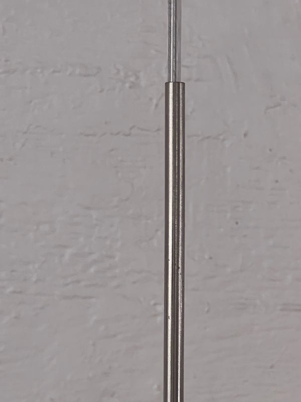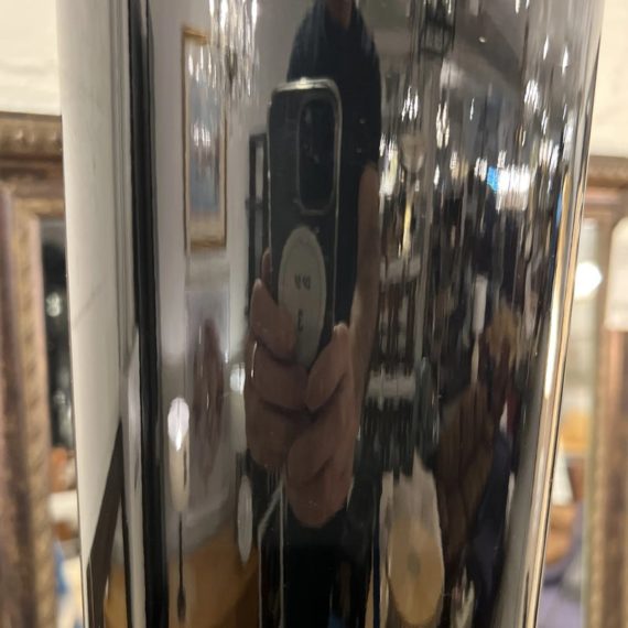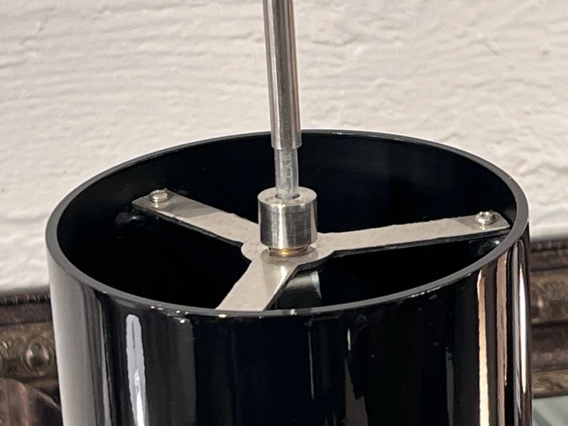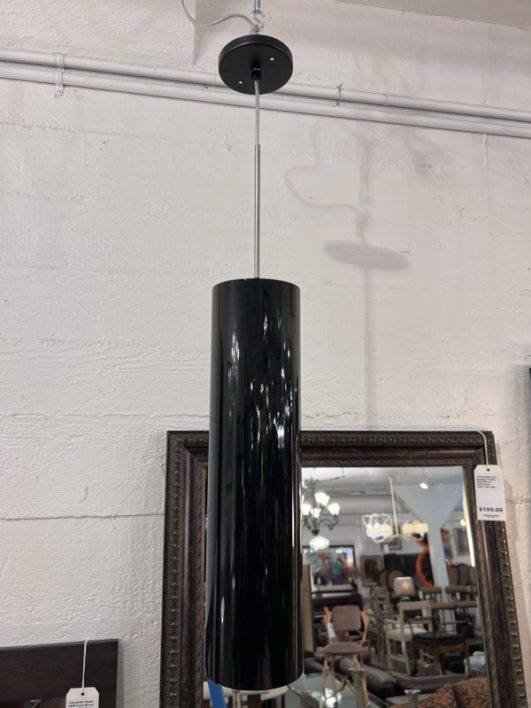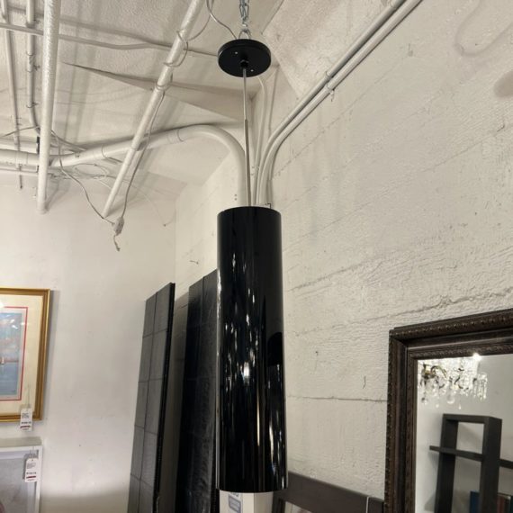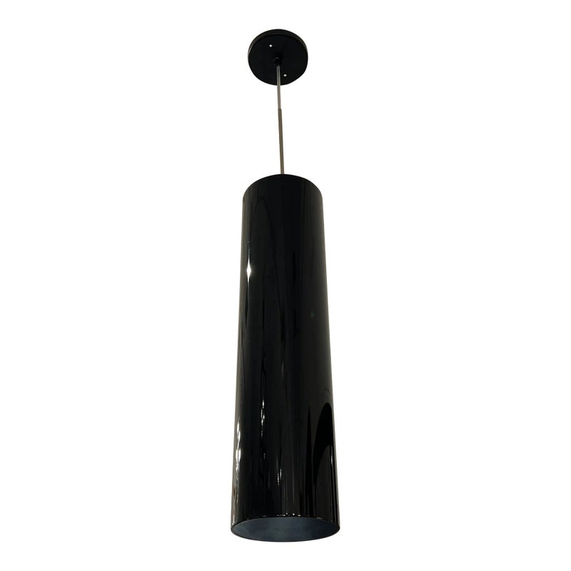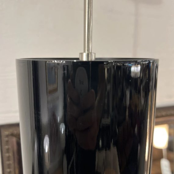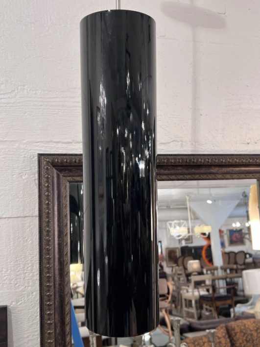 Design Plus Gallery presents the Piper Grande Pendant from Visual Comfort. Black satin nickel finish on a long smooth column housing a light source. The pendant is in good condition for its age + use.