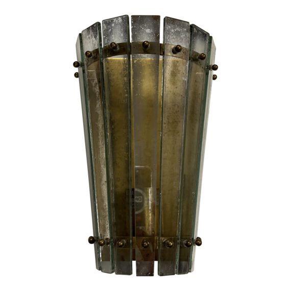 Design Plus Gallery presents a Visual Comfort NEW Small Cadence Sconce. Hand rubbed antiqued brass frame + mercury patinaed glass panels references the past with an Italian aesthetic and Hollywood Glamour. There is minor wear through out, sconce is in good condition.