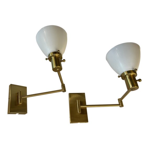 Walter Von Nessen Studios Vintage Brass Swing Arm Wall Sconces, a Pair