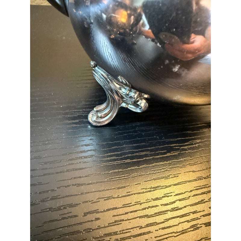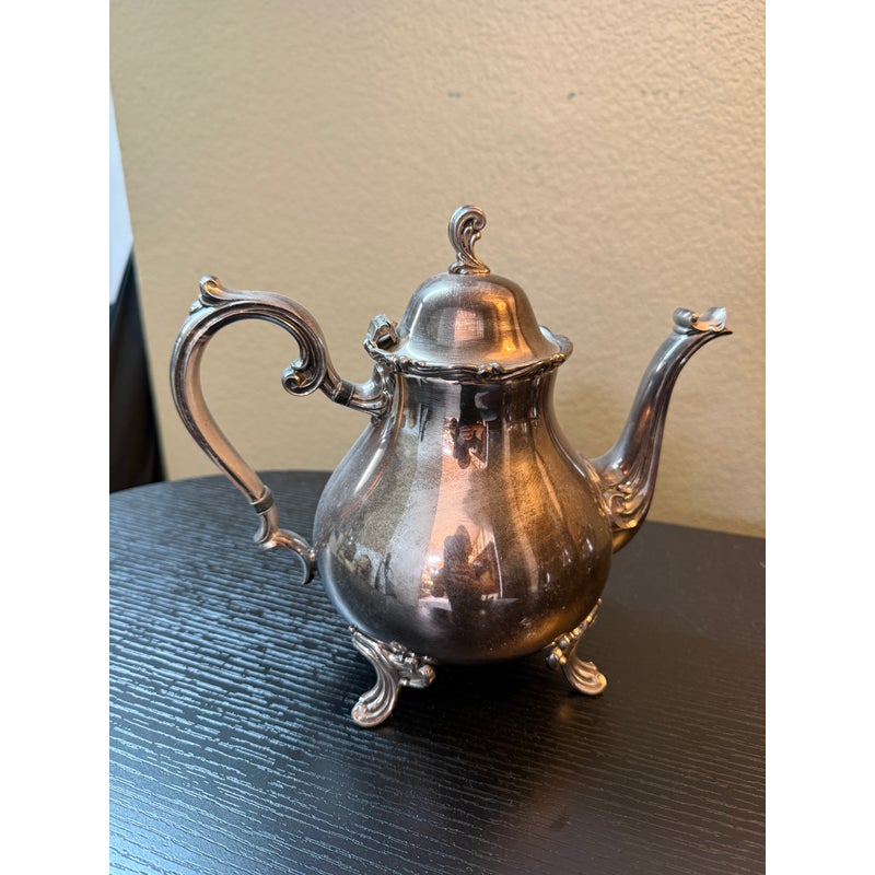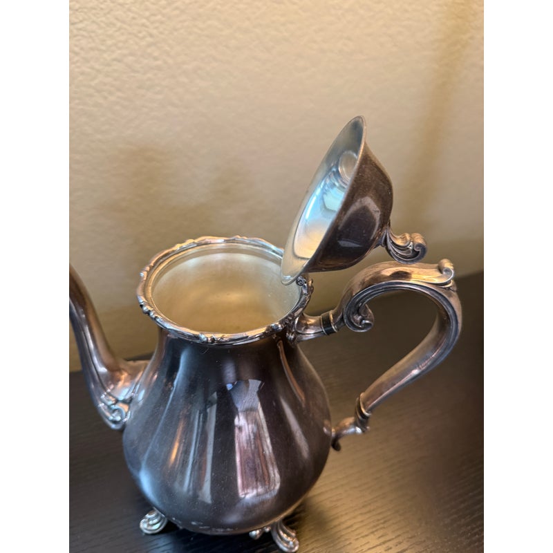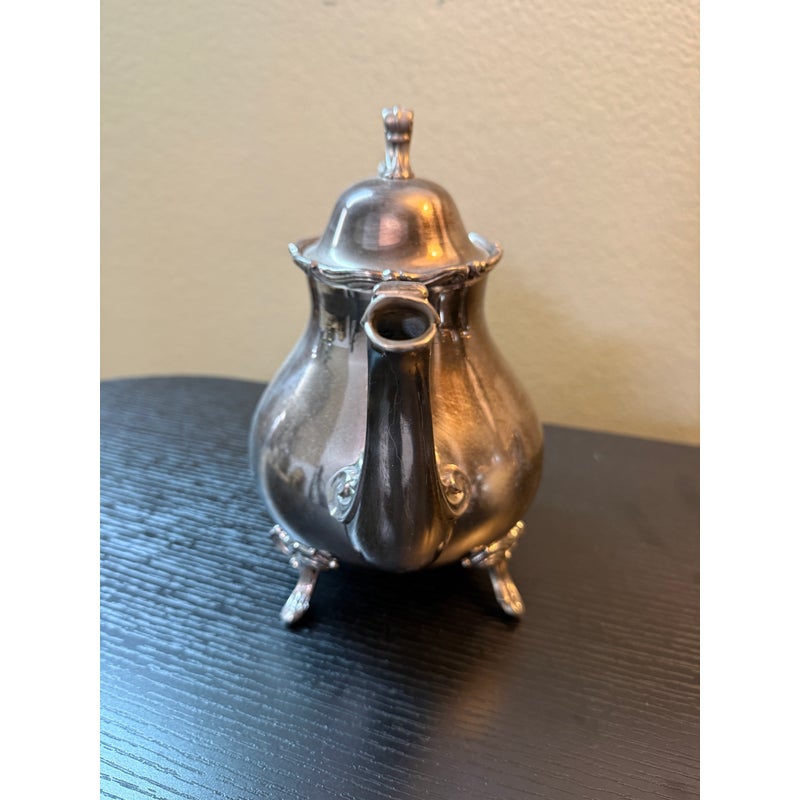 Design Plus Gallery presents a Set of Four Silver-Plate Tea Service from Webster Wilcox. The silver tea set is a prized collectibles as they are known for their fine silverplate craftsmanship. This set has a style of 19th-century Victorian design, or as shown on bottom, style 7201. The set includes two teapots, a creamer and a sugar pot. Minus the tarnish the seat is in good overall condition for its usage.