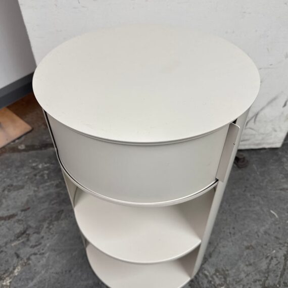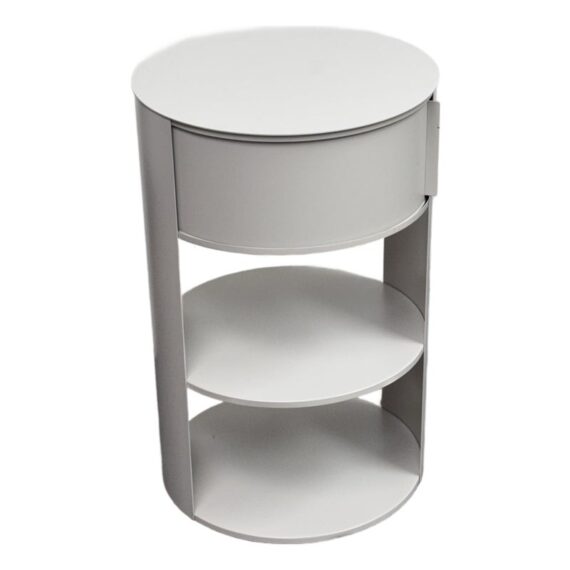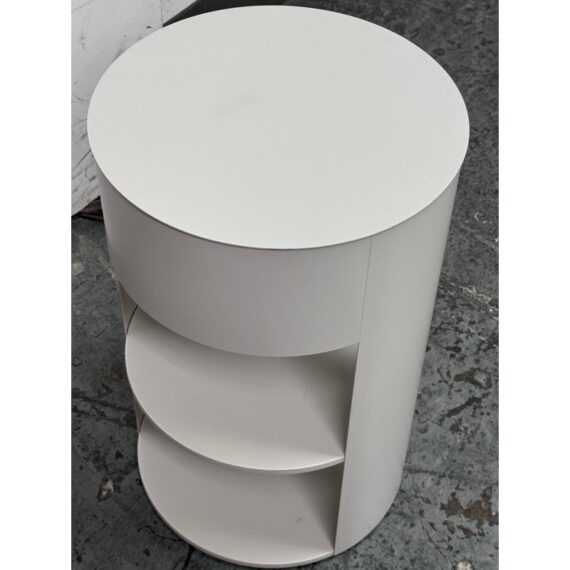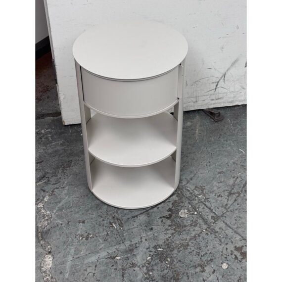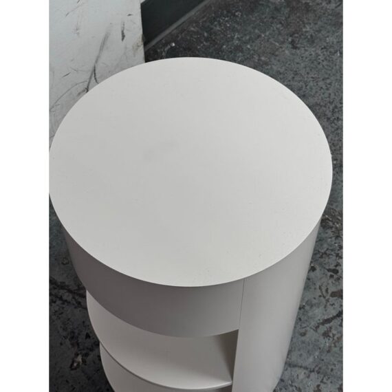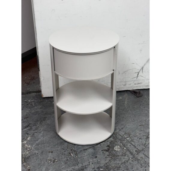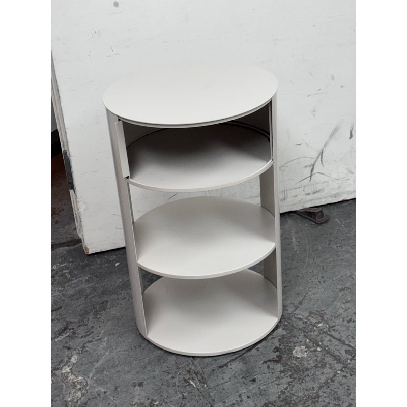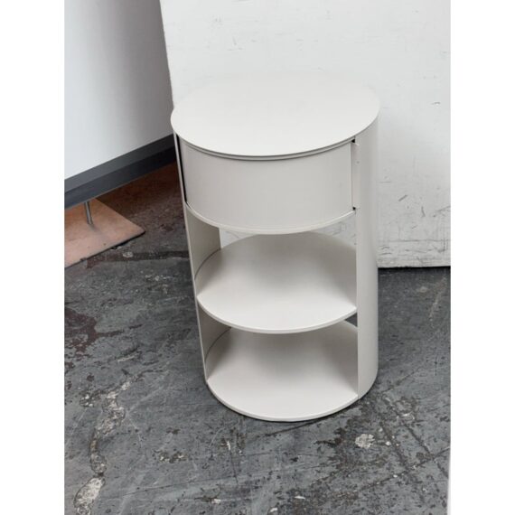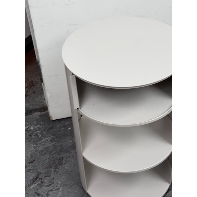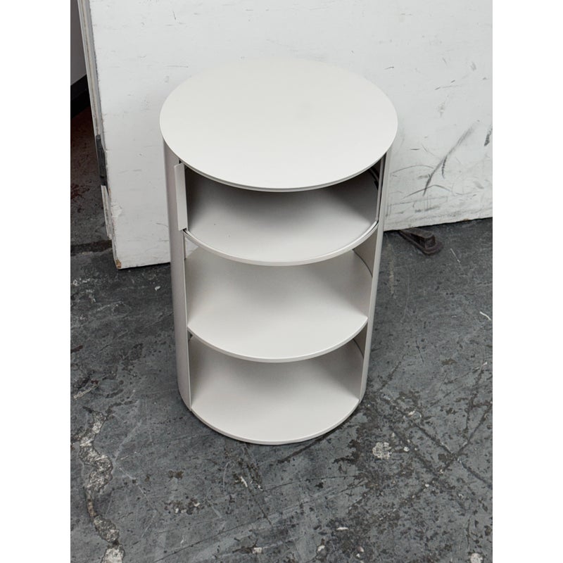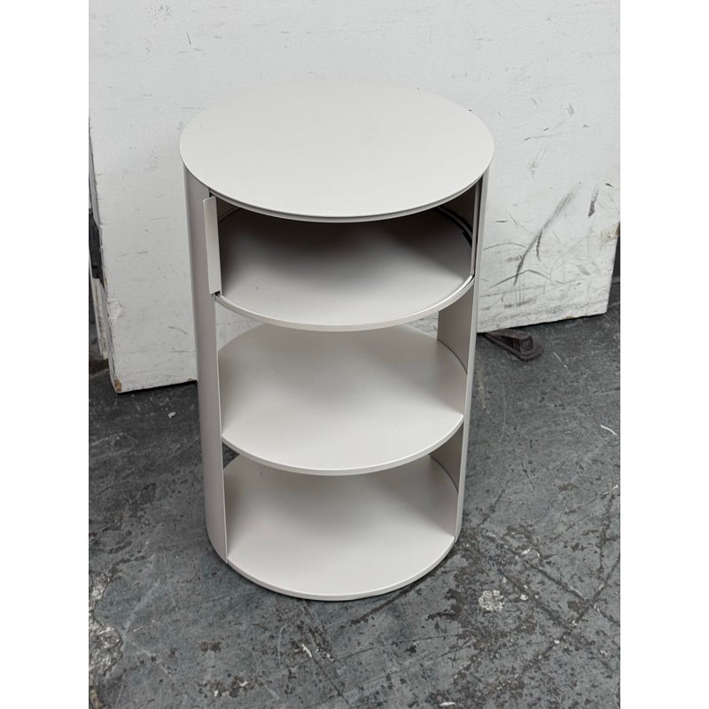 Design Plus Gallery presents the Belle Nightstand from West Elm. The nightstand has a single sliding door that opens to reveal a hidden cubby for easy-to-reach bedside essentials. Hand welded with two fixed shelves and in their discontinued stain, Haze. In good condition, visible and minimal wear from usage.