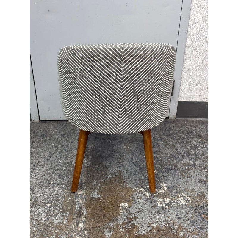 Design Plus Gallery presents the Saddle Office Chair from West Elm. Done in the gray with cream chevron fabric for a hyper mid century modern to retro appeal. Is in good condition for its usage.