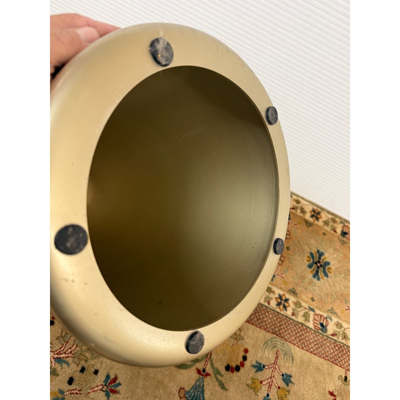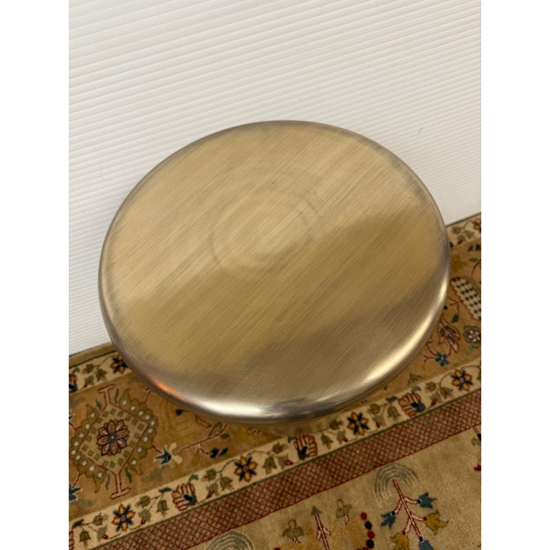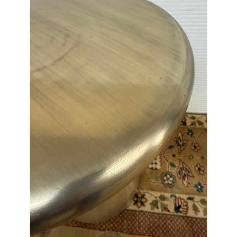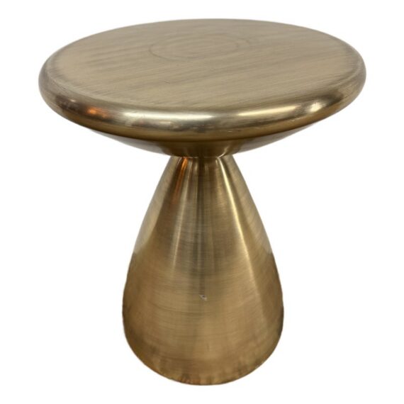 Design Plus Gallery presents the Cosmo Side Table from West Elm. The table is made of lightweight aluminum and given their Antique Brass treatment that is suitable for indoor or outdoor use. The sculptural frame holds plants, drinks, & decor. It shows some fine wear to the surface but overall in good condition.