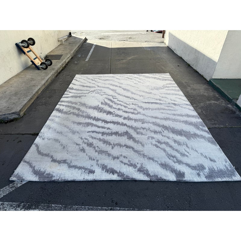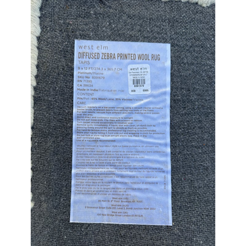 Design Plus Gallery presents a Diffused Zebra Print Area Rug by West Elm. Hand tufted and printed, the Diffused Zebra Rug reinterprets an edgy animal print in blurred neutral tones. 62% wool, 38% viscose in Platinum. Made in India. Light spots and soil; cleaning recommended