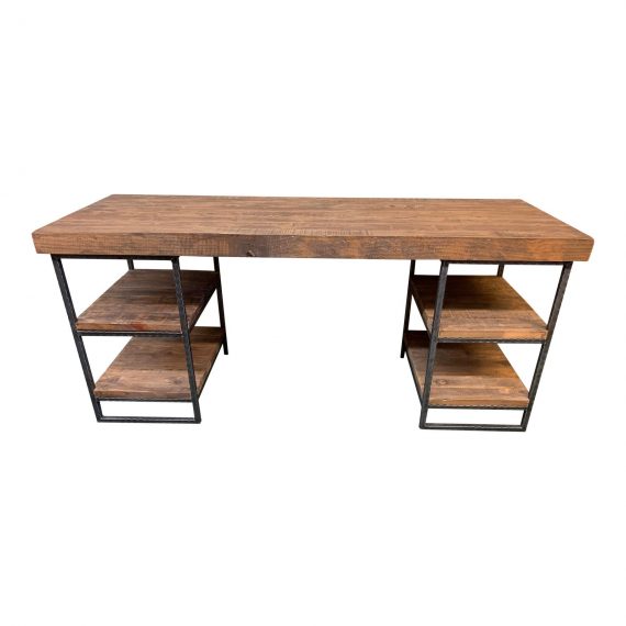 Design Plus Gallery presents the Hewn Desk by West Elm. Rustic but with clean lines, the Hewn Wood Desk is crafted with reclaimed pine and wrought iron. It offers a large work surface and four open shelves for storage or display.
