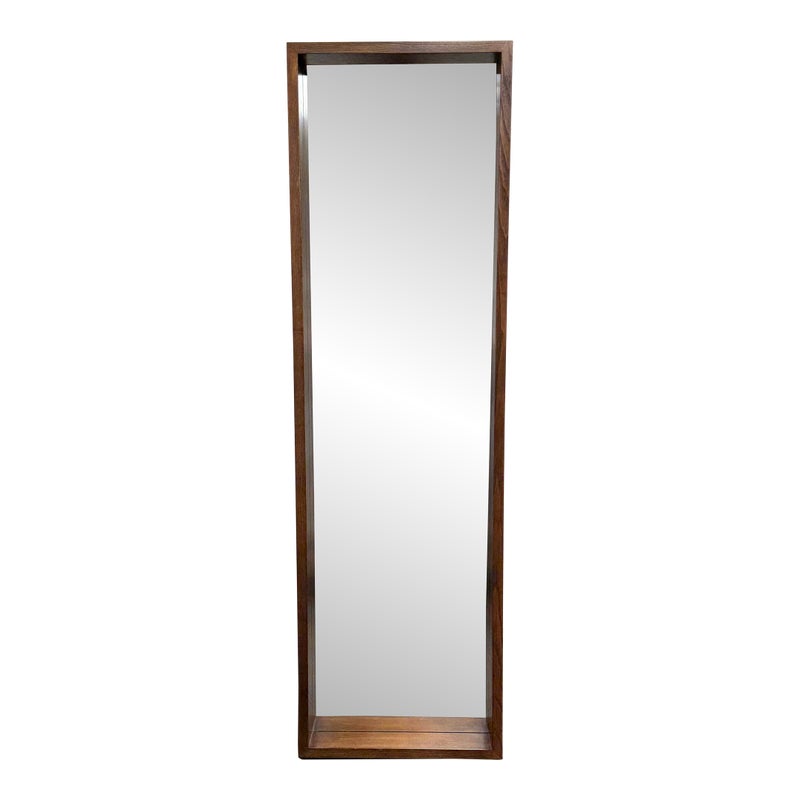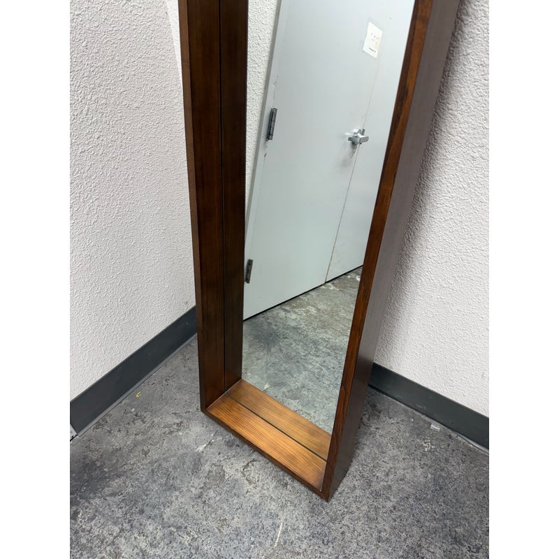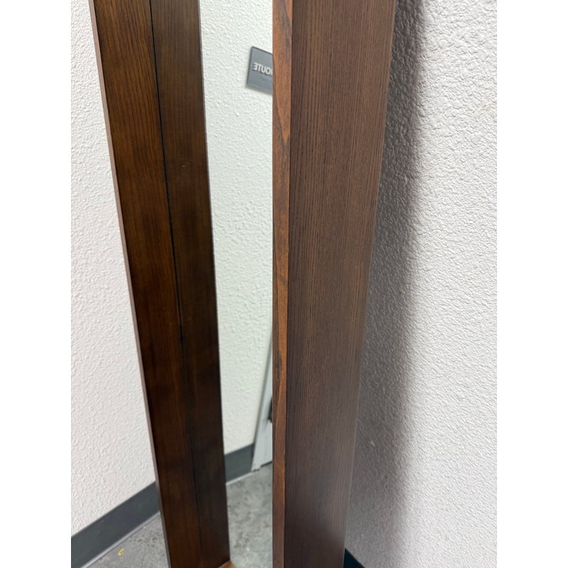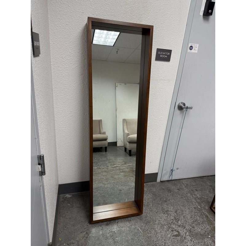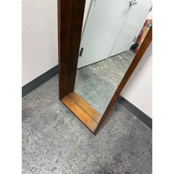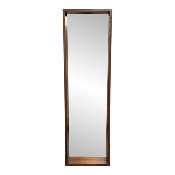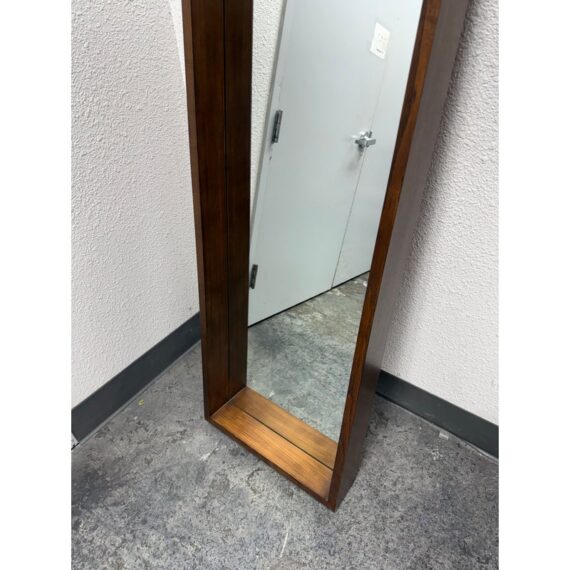 Design Plus Gallery presents the Shadowbox Floor Mirror from West Elm. The recessed mirror is placed back from the frame that is a medium brown walnut finish. The back side offers panel work that allows this piece to rest upon the wall as a lean or hung on the groves. It is in good condition with minimal wear from usage.