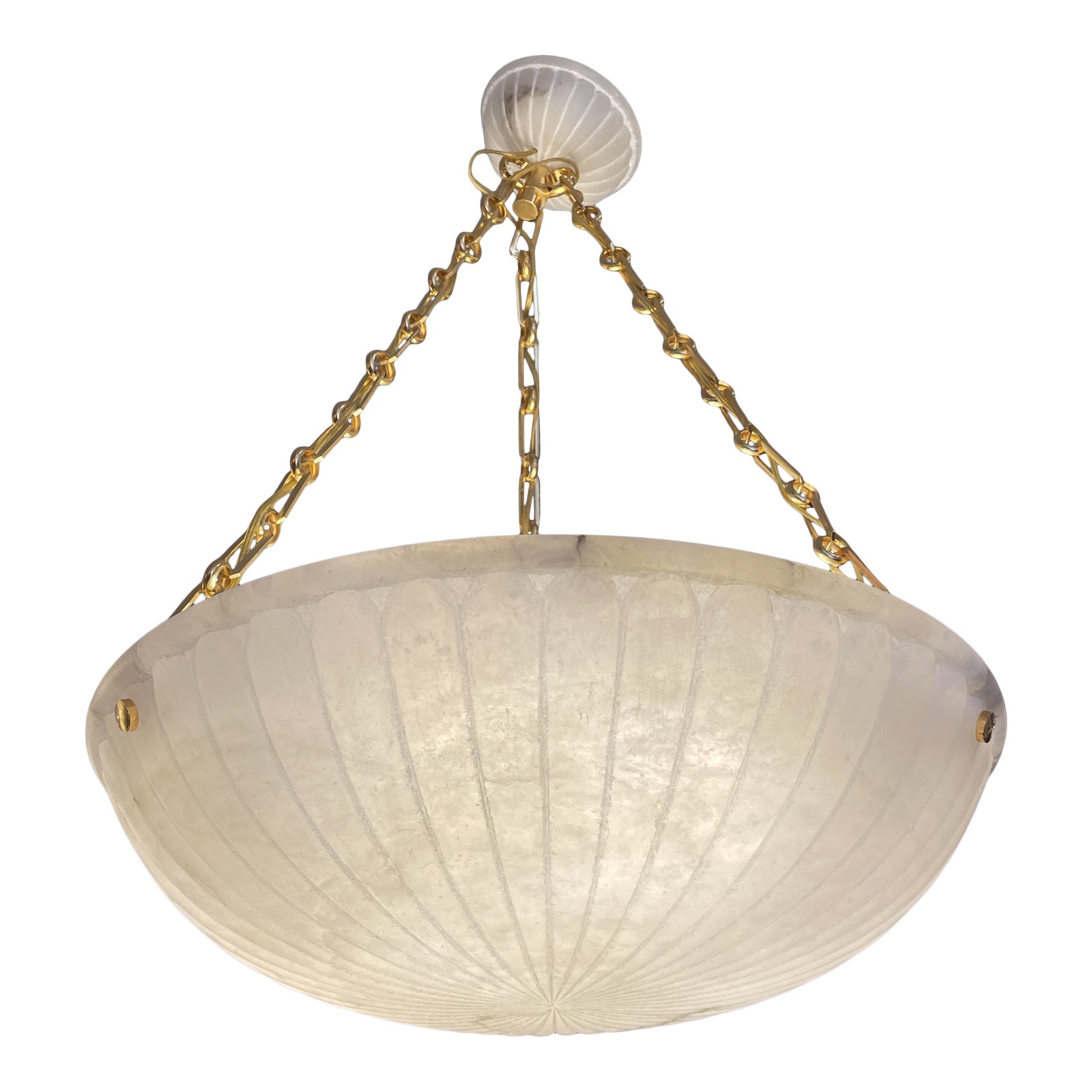 White Alabaster Bowl Semi-Flush Pendant + Gold Chains
