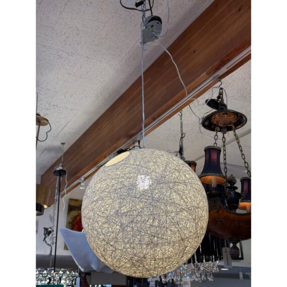Design Plus Gallery presents a Vintage Orb Pendant. With a relaxed, coastal-cool vibe, the pendant adds texture to any and every interior space. Each sphere is a perfectly structured orb allowing a warm patterned light to glow through. Little wear; condition is good.
