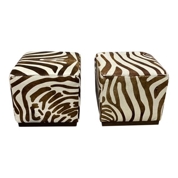 William Sonoma Robertson Cube Zebra Ottomans – a Pair. Original Price: $2,390