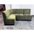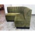 Design Plus Gallery presents a Banquet Seating Set of Two with a Curved Sofa + Armless Chair Custom Created by Village West Designs. The banquet seating is perfect for your kitchen dining area with a rounded sofa and individual armless chair that can be placed in multiple ways. The entirety of the banquet seating is in an olive green velvet with the seat back offering paneled tufting. They have platform bases of a dark wood, espresso like finish. Both the chair and curved sofa show visible and minor visible wear and are considered to be in good condition for their usage. Made in the USA.