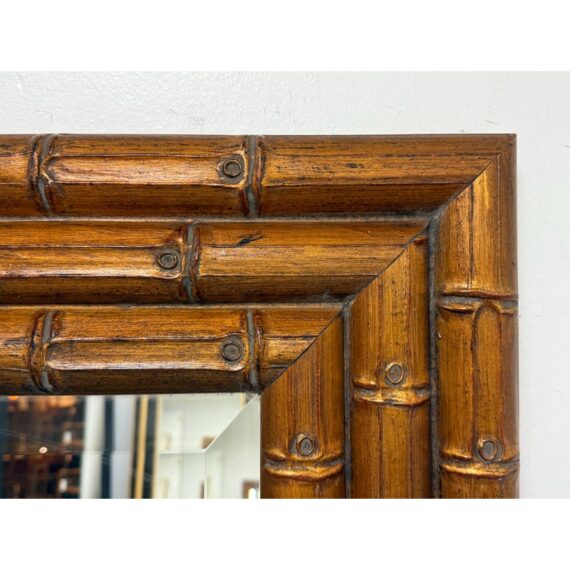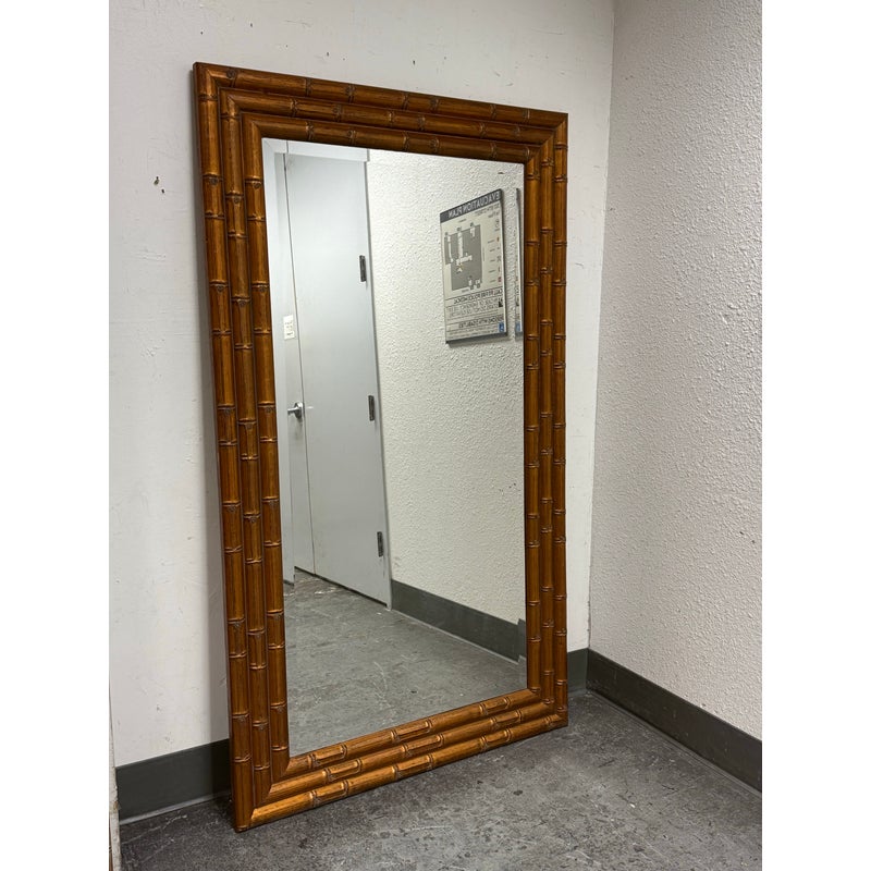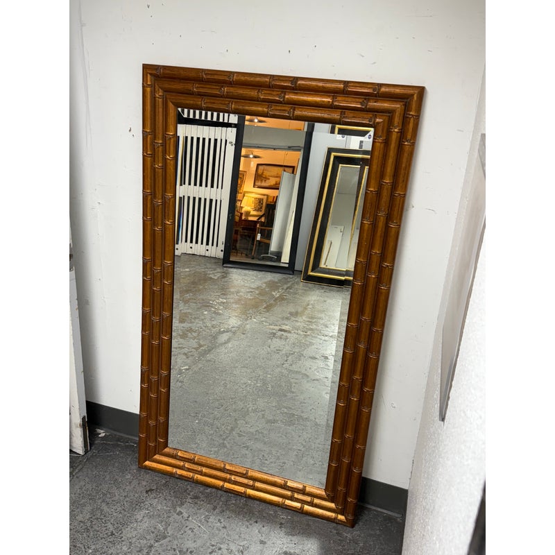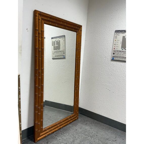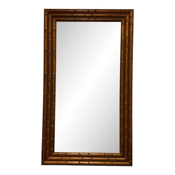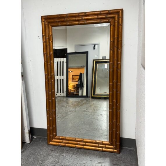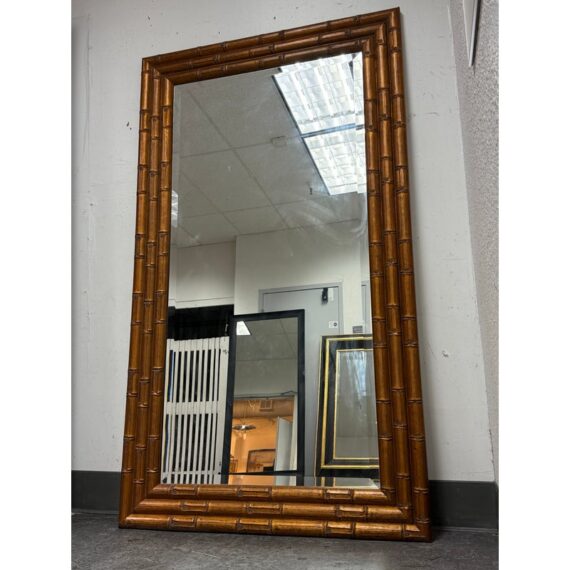 Design Plus Gallery presents a Floor Mirror from Windsor Art & Mirror Company. The mirror is dynamic, can be hung vertically or placed to lean against a wall. The frame has three layers of bronze painted bamboo reeds that is attractive, bohemian and many other styles in between. Overall the mirror is in good condition with visible and minor visible wear that is consistent with usage.