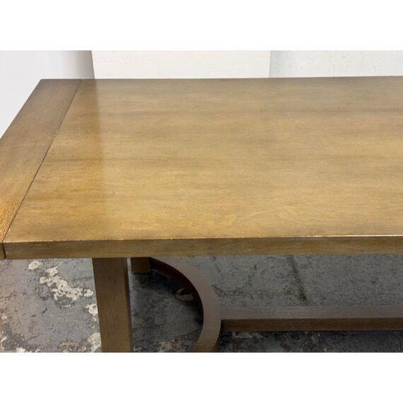 Design Plus Gallery presets a Kenzie Dining Table from Woodland Furniture. The table is made from alder wood and showcases their Antico Finish with distressing that adds character and a rustic charm to its appearance. The table boasts a warm, vintage look that complements a variety of interior styles. In good condition, visible and minimal wear from usage + age. Made in USA.