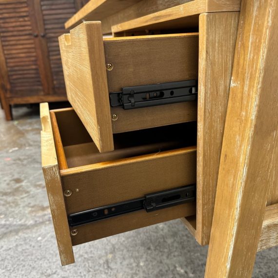 Design Plus Gallery presents a Writing Desk from World Market. Made from mango wood, it has a simple design style and is great for a kids room. Two drawers for organization to the right side. Surface wear is present but overall in good condition.