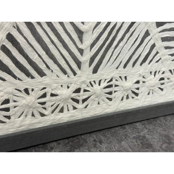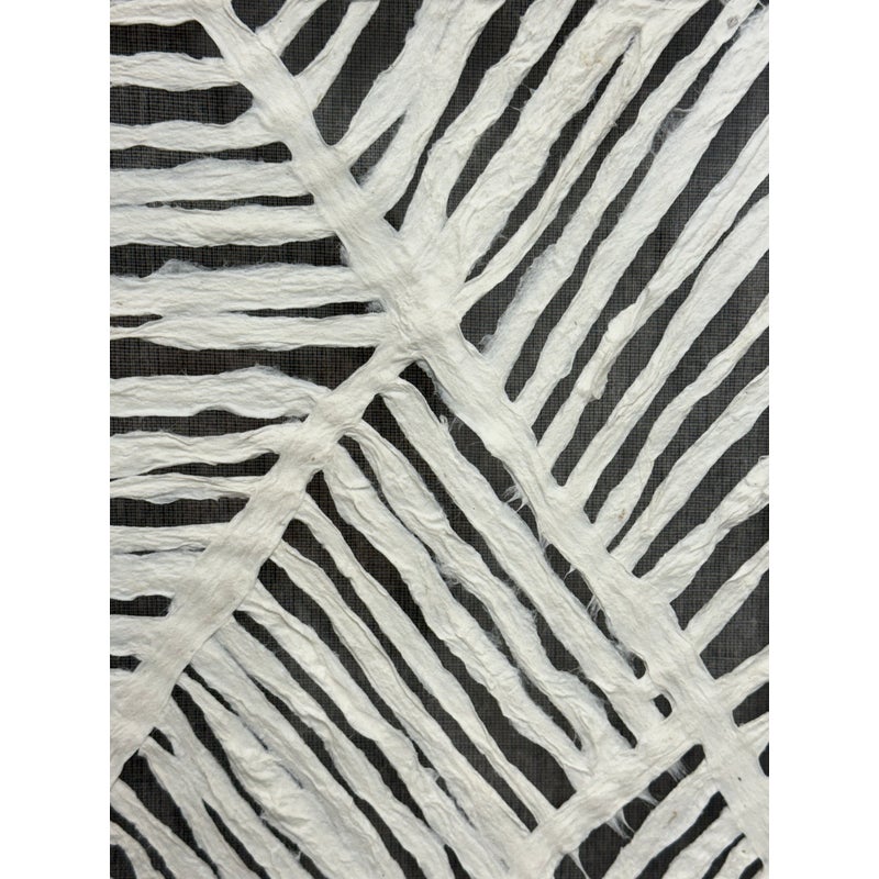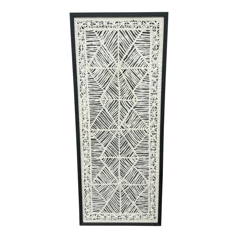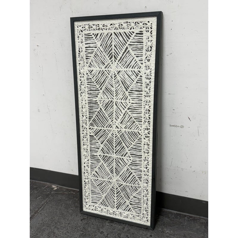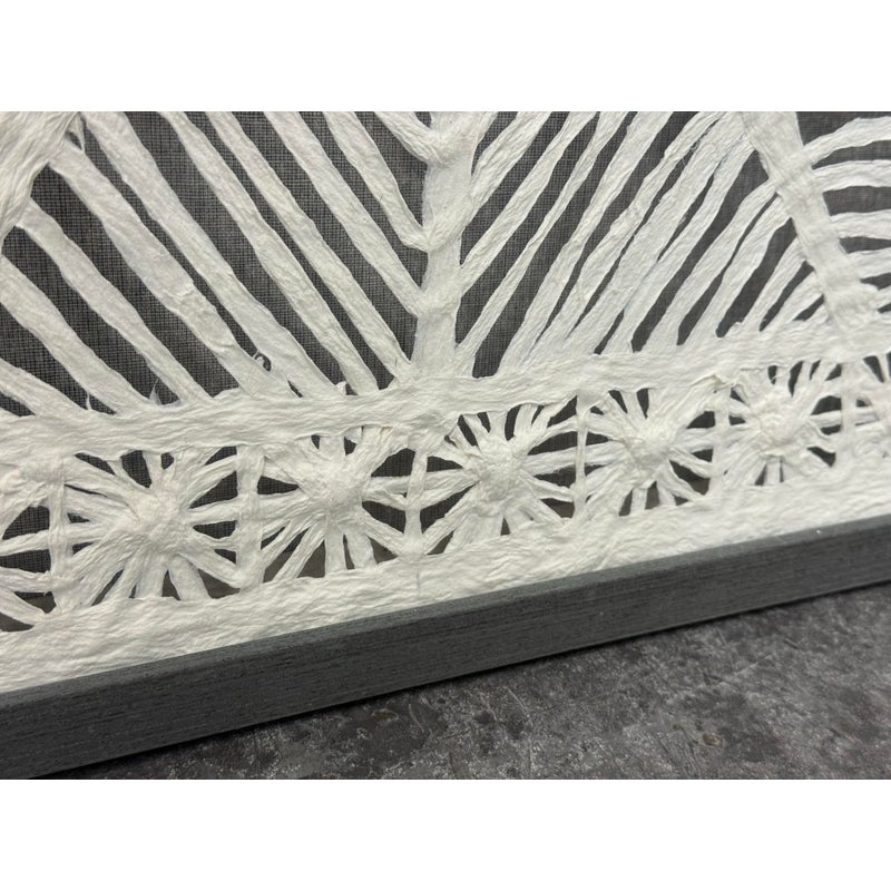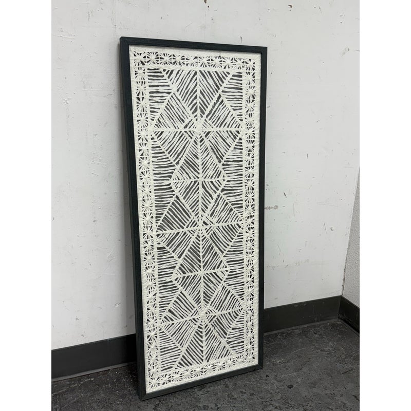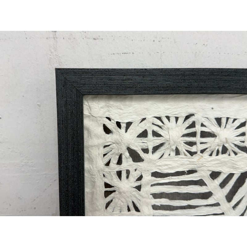 Design Plus Gallery presents Rice Paper in a Geometric Diamond Cut from World Market. Layers of delicate rice paper form a mesmerizing overlapping diamond pattern on a natural linen backdrop to create this framed work of art. This striking piece takes its cue from a rich history going back some 200 years in the city of Guangdong, China, where Westerners once flocked to buy rice paper art. Meticulously handcrafted, this wall art is framed in a black stained wood shadow box that lends it an organic feel. Is in good, like new condition for its usage.