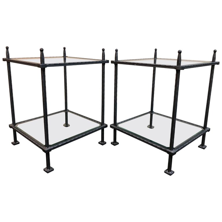 Wrought Iron + Glass Side Tables by Claudio Rayes, a Pair