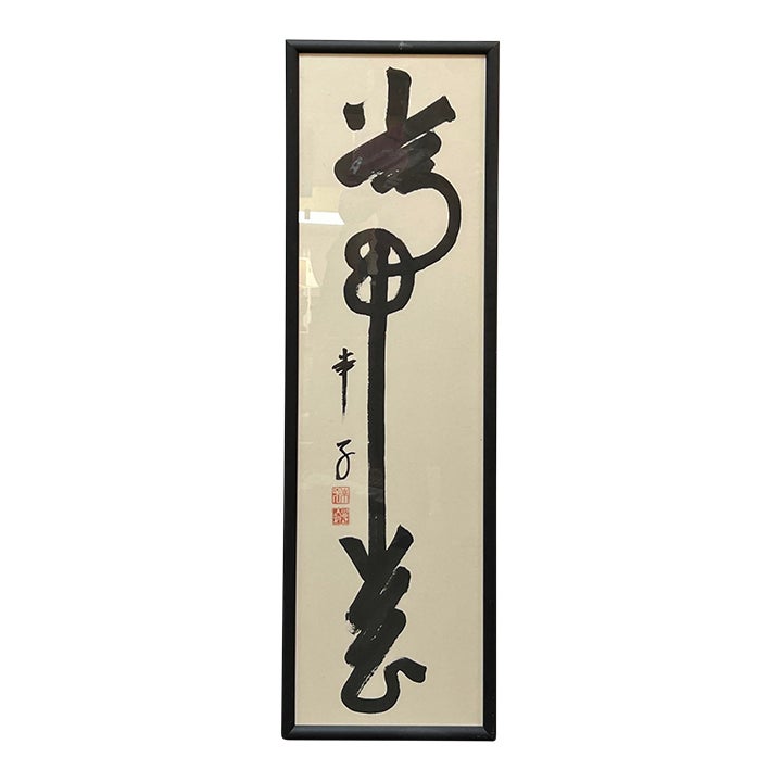 Design Plus Gallery presents “Always Remember” a Brushstroke Painting by Y. Sachiko Kahatsu. A striking and graphic message depicted with but a few broad brush applications of ink on paper. Signed by the artist, framed simply to great effect. Little evidence of wear.