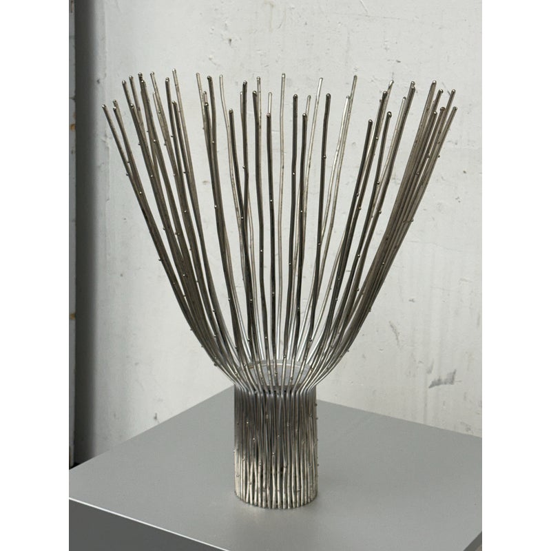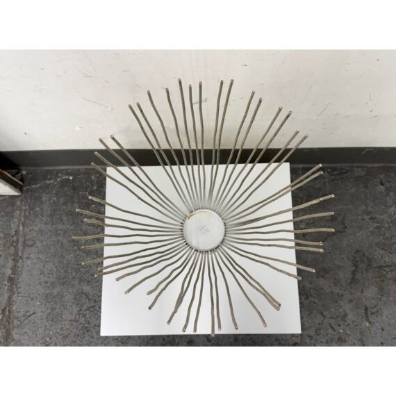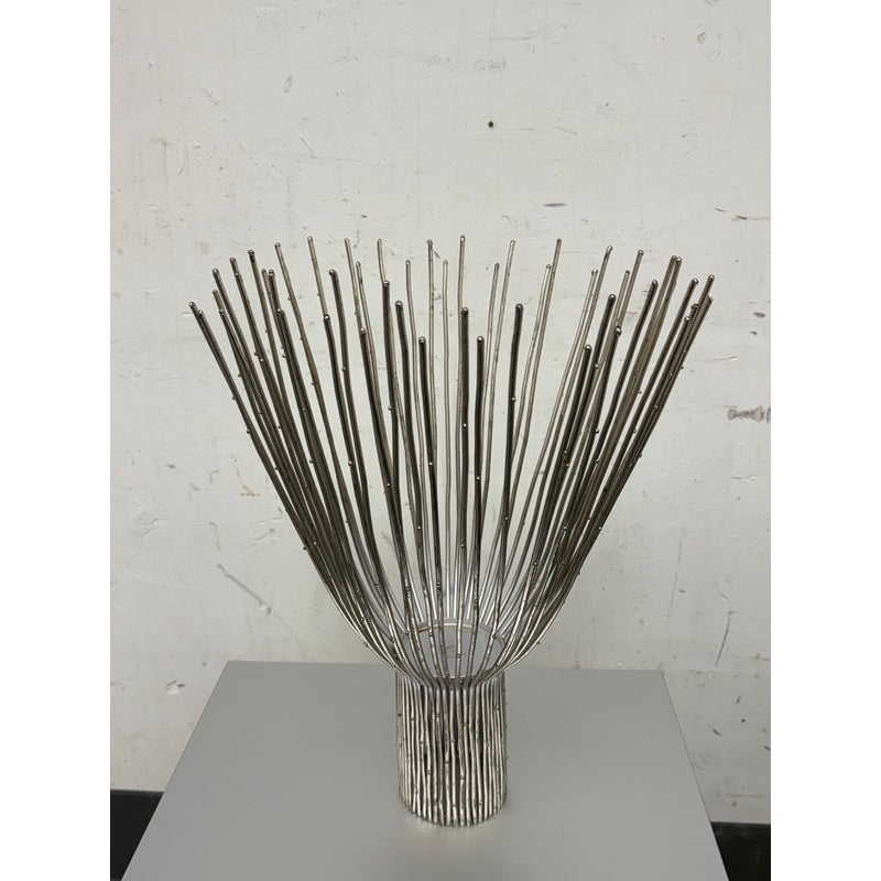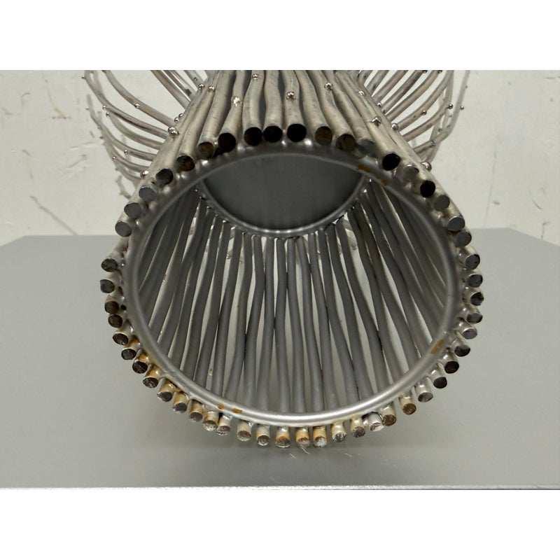 Design Plus Gallery presents a Wire Candle Holder from Z Gallerie. This is a super cool way to showcase a candle in your home; just image the light flickering off of the metal rods when it the candle is lit. The piece is in good condition with minimal wear for its usage.