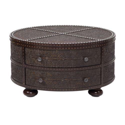 Design Plus Gallery has a Zanzibar Coffee Table . This table has an ethnic feel to it, resembling Indonesian carved wood. I love the metal details, and the drawers would be so practical. Heavily accented with an authentic floral-vine pattern with an antique finish. Made of solid wood components, resin and metal plates. Drawer interiors are finished with old map renderings and metal knobs on the exterior.
