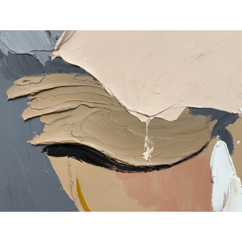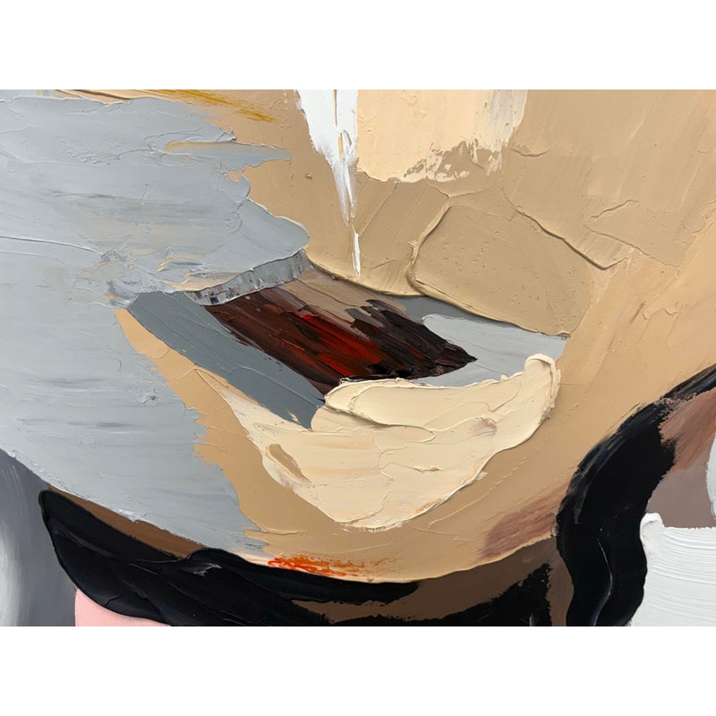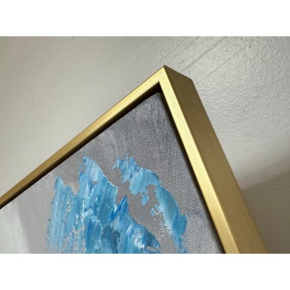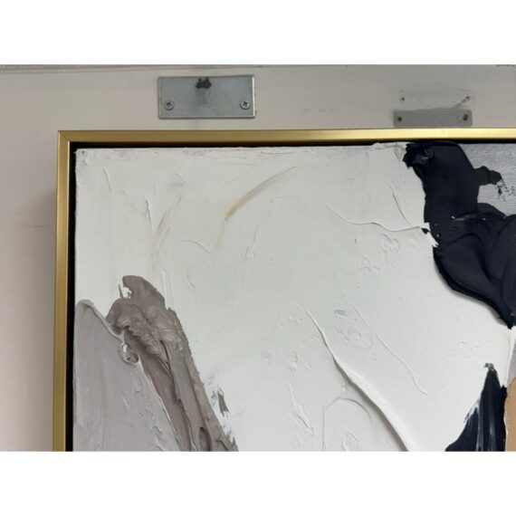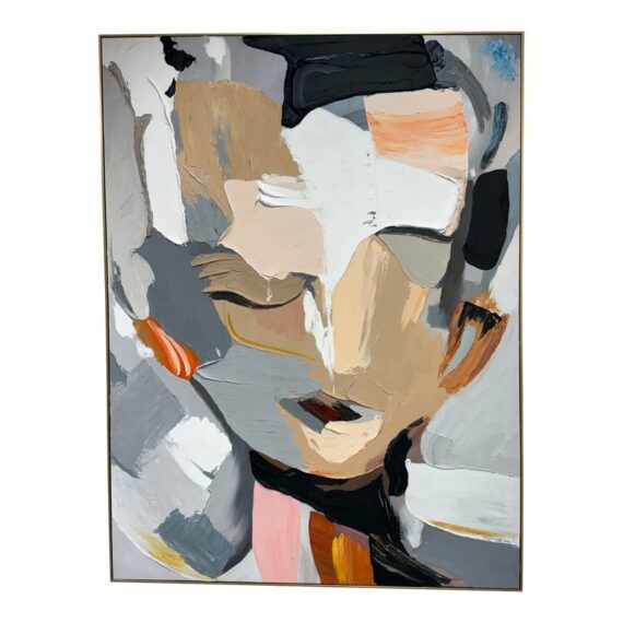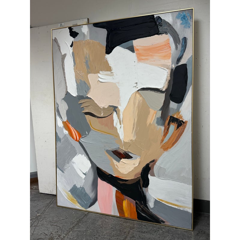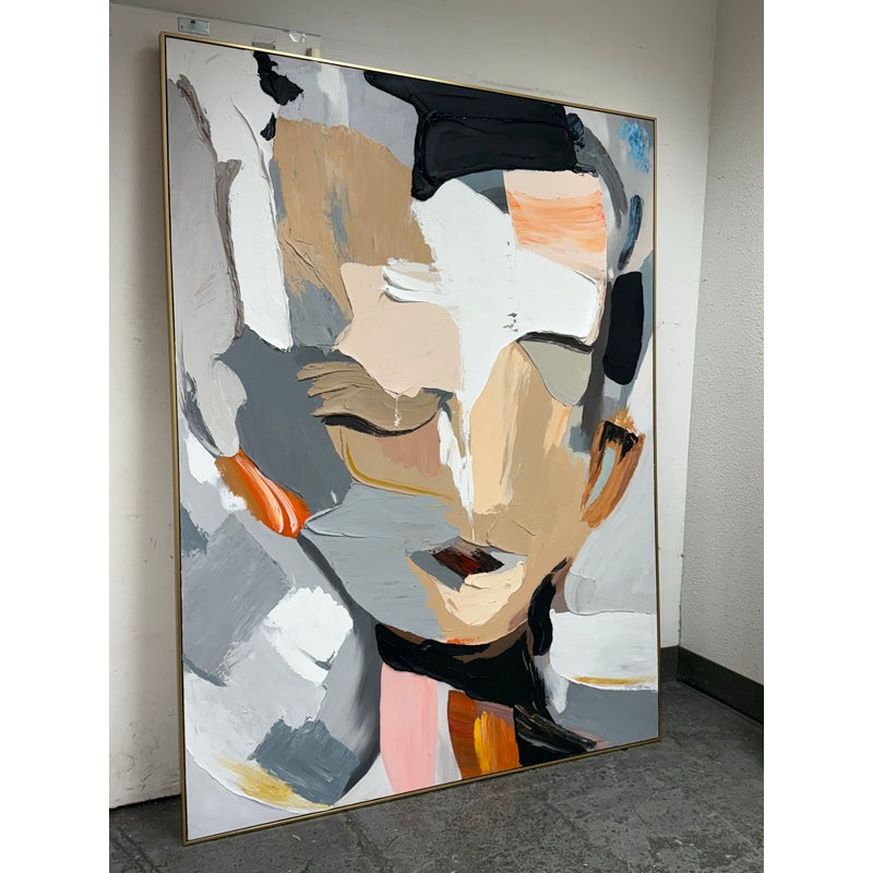 Design Plus Gallery presents the Colorful Wall Art in Gold Frame from Zing and Zap. This is their style #CA113 in an oversized size with thin rim of gold. The artwork has an abstract face originally made into creation with the use of a palette knife. It is in good showroom like condition with minimal wear for its usage.