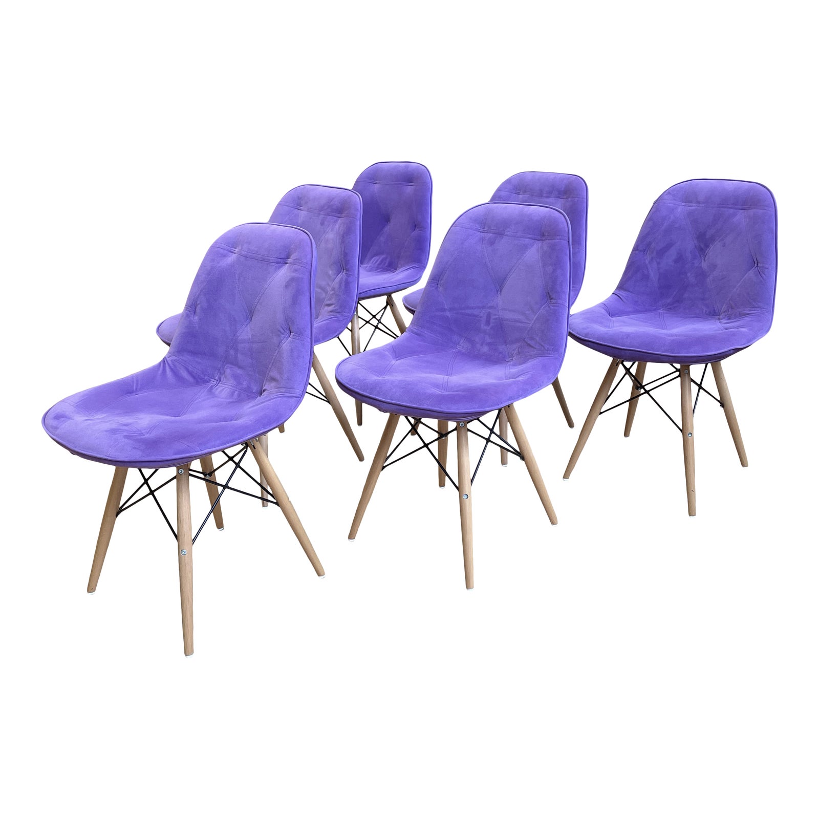 Design Plus Gallery presents a Set of Six Purple Probability Chairs by Zuo Modern. The Probability Chair is a sweet velour seat. Modern meets mod in the shape and metal crossing at the legs. Inspired by the iconic Ray & Charles Eames Eiffel Chair.